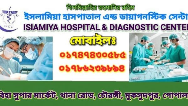 বাংলার নয়ন সংবাদঃ গোপালগঞ্জের মুকসুদপুর উপজেলার চৌরঙ্গির সাবিহা সুপার মার্কেটের ২য় তলায় ইসলামিয়া হাসপাতাল এন্ড ডায়াগনস্টিক সেন্টার অবস্থিত। উপজেলা সদরের প্রানকেন্দ্র চৌরঙ্গিতে সাবিহা সুপার মার্কেটের ২ তলায় ও ৩ তলা