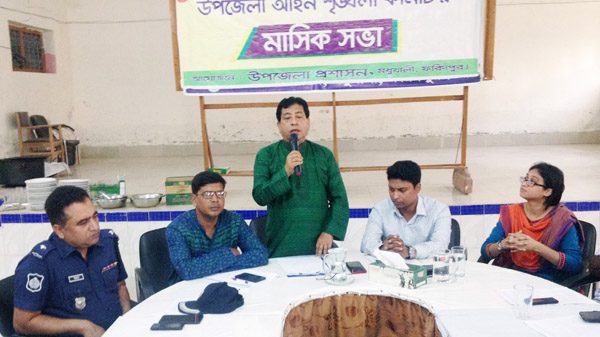 সেতু আক্তার, মধুখালী (ফরিদপুর) প্রতিনিধি: ফরিদপুরের মধুখালী উপজেলার আইন শৃঙ্খলা কমিটির আগস্ট মাসের আইনশৃঙ্খলা কমিটির মাসিক সভা অনুষ্ঠিত হয়েছে। গতকাল সোমবার বেলা ১১ টায় উপজেলা নির্বাহী কর্মকর্তা মোঃ মোস্তফা মনোয়ারের